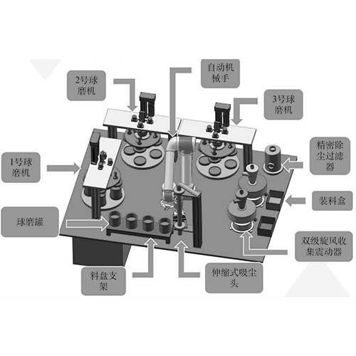 功能 | 球磨罐取放、旋风收集振动器装料、伸缩吸尘头操作 | 全流程自动化核心部件 | |